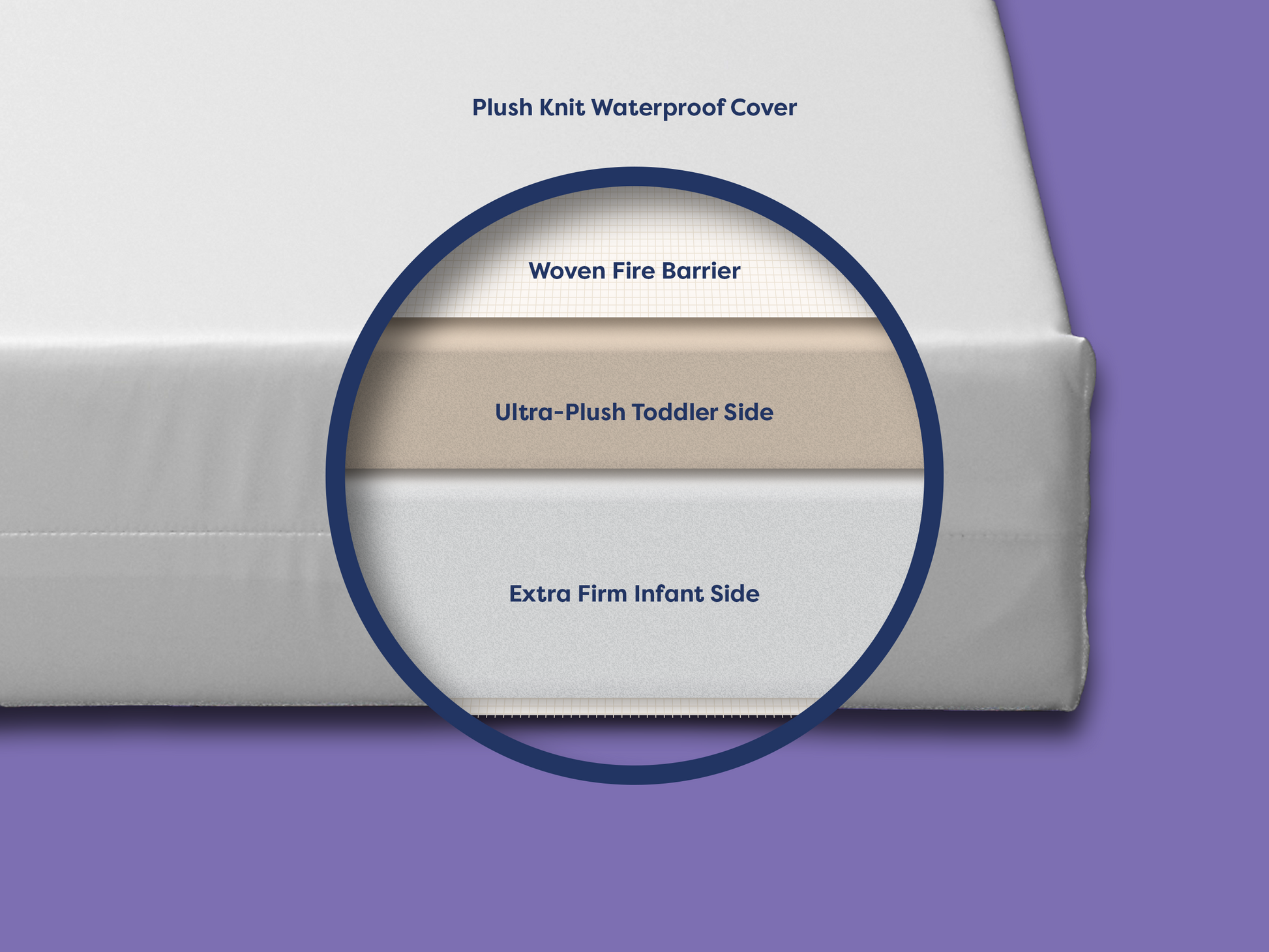 Our award-winning Little Dreamer is highly revered and highly rated by mattress professionals, industry leaders and parents alike. This 5” dual-sided top seller supports both newborns and toddlers with a high-density infant foam side and corresponding plush foam toddler side. Simply switch the mattress when your little one is ready for the next step, using the arrows on the mattress tag as a guide.